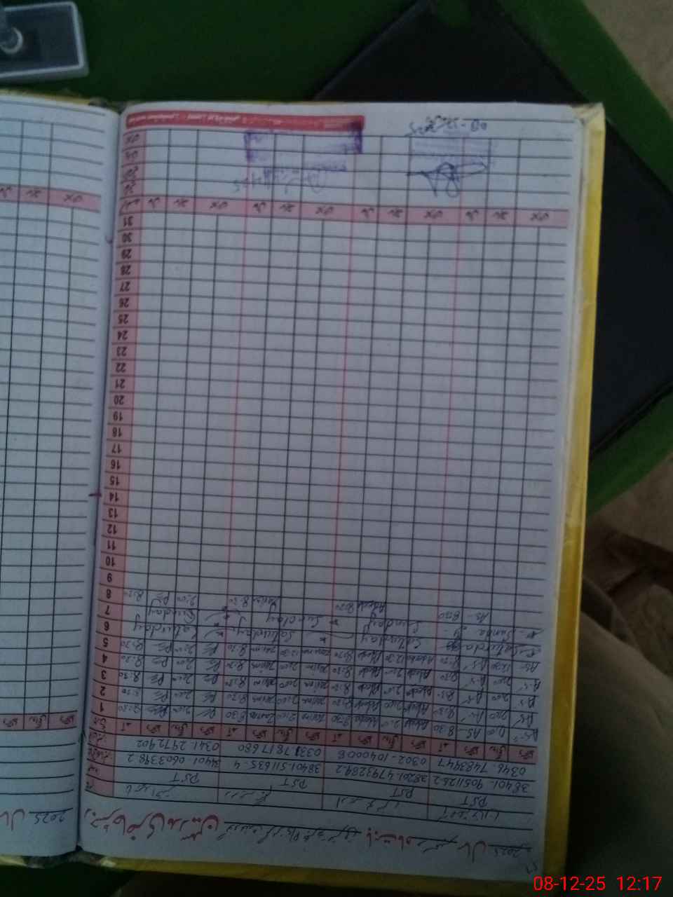 | CNIC | Full Name | Designation | R/C | Absence During Last Calender Month |