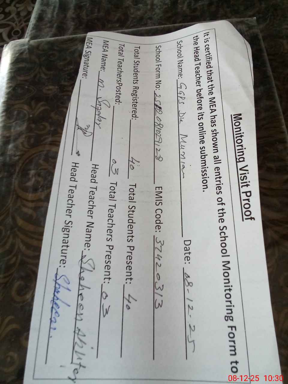 | EMIS Code: 37420313 | Name of School: GGPS MUNIAN | |||