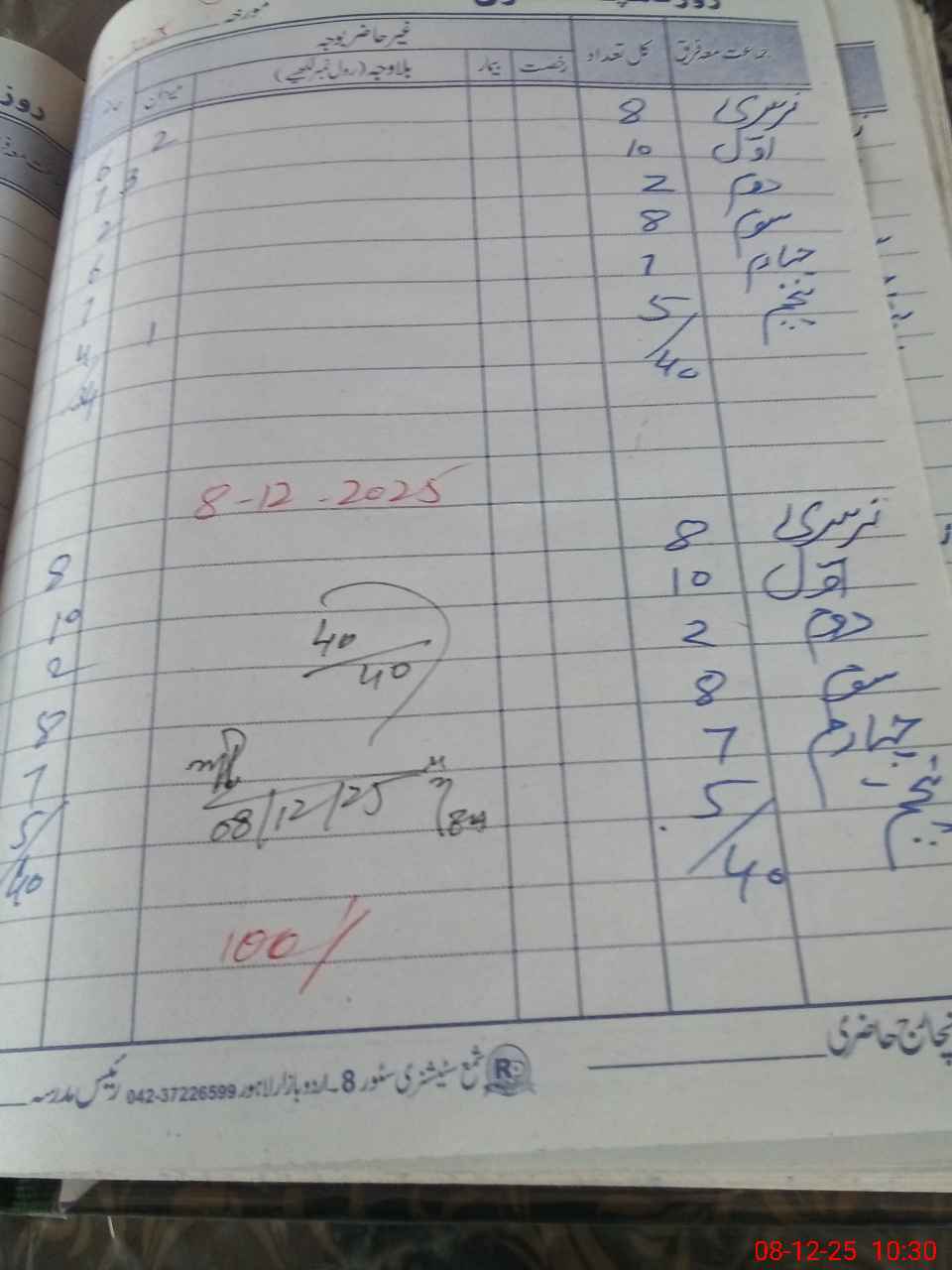 | Total Students Present | 0 | 0 | 10 | 2 | 8 | 7 | 5 | 40 | ||||||||
