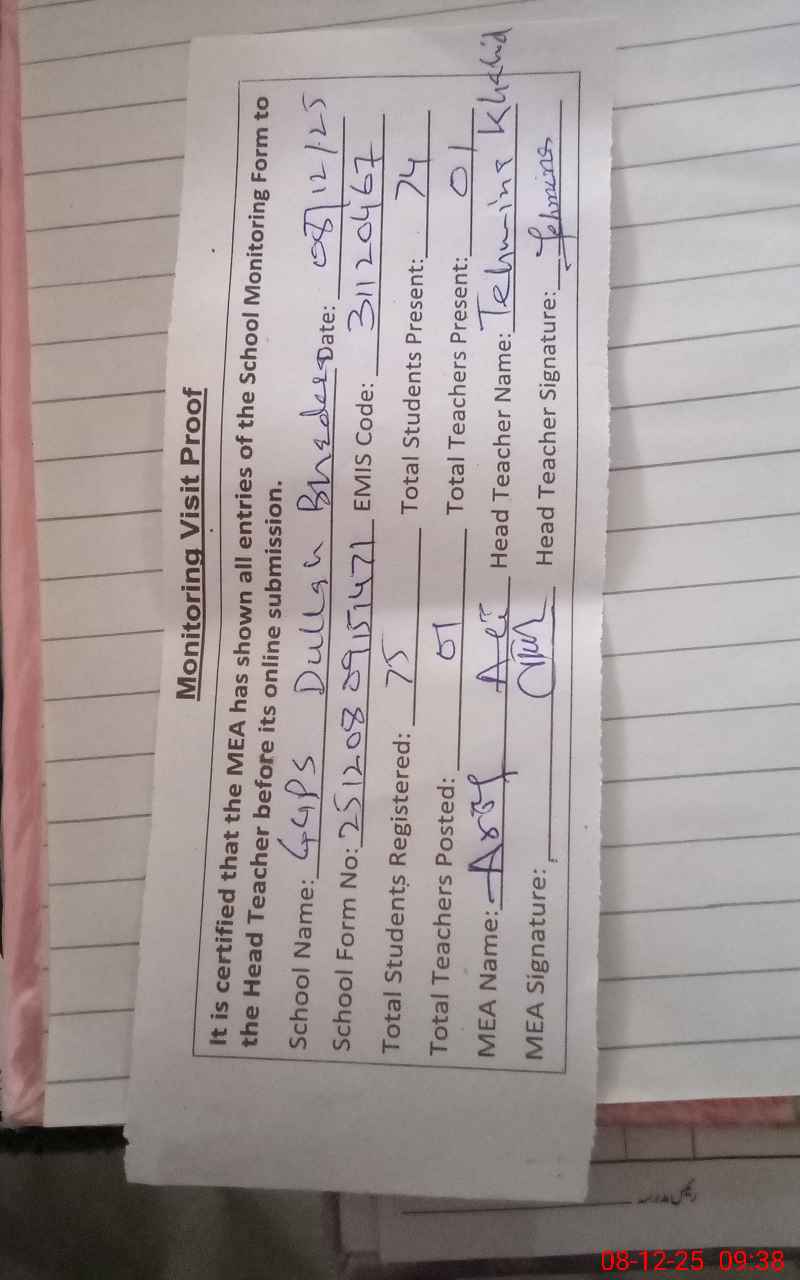 | EMIS Code: 31120467 | Name of School: GGPS DULLAH BHUDERA | |||