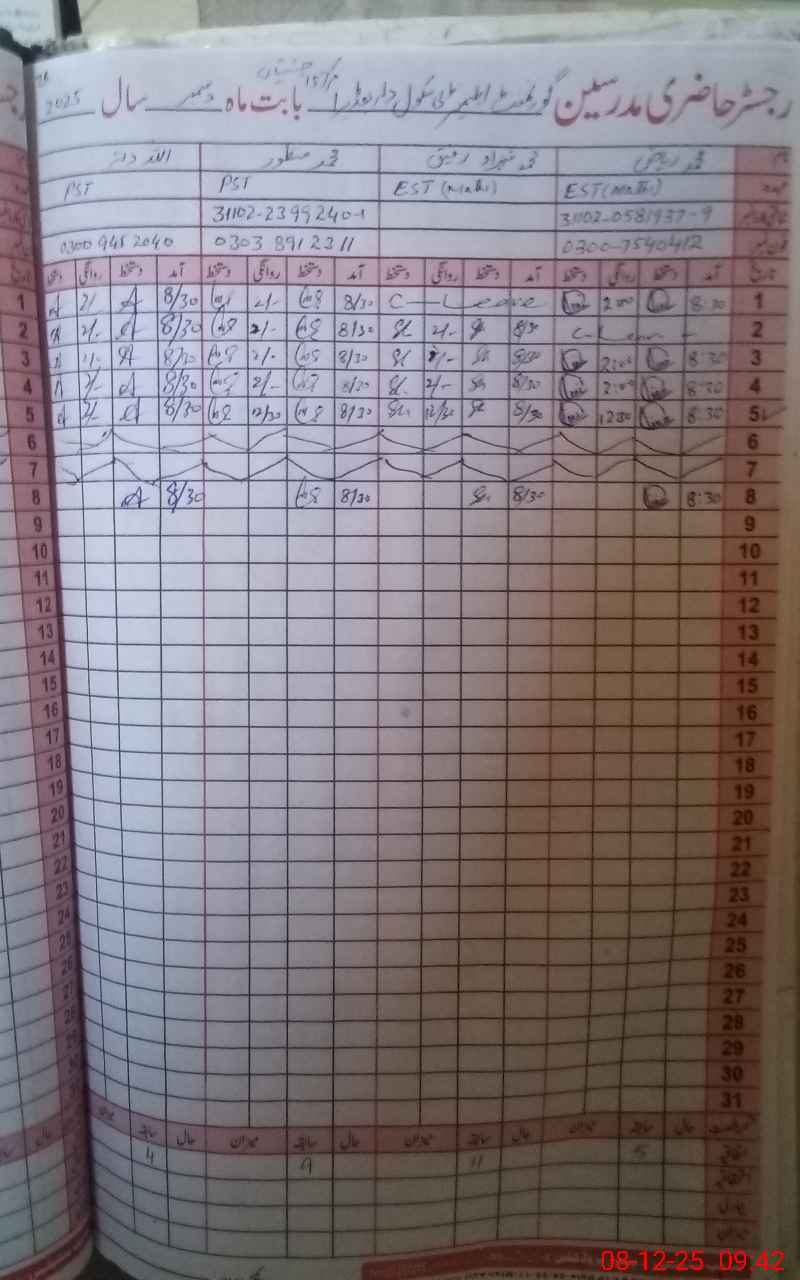 | Name: MRi**** Designation: (School Headmaster's/Headmistress's) EST Phone/Cell Number: 03**** |