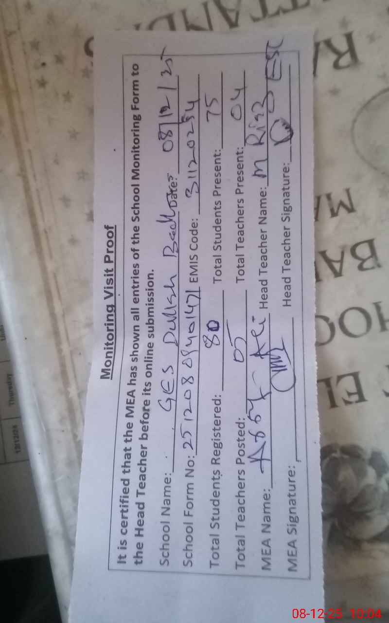 | EMIS Code: 31120254 | Name of School: GES DULLAH BHUDERA | |||