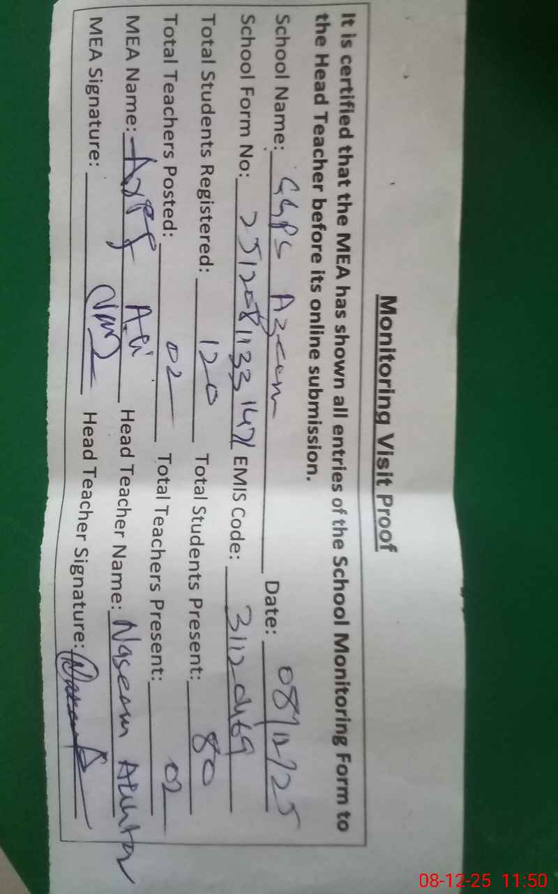 | EMIS Code: 31120469 | Name of School: GGPS BASTI MUHAMMAD AZIM | |||