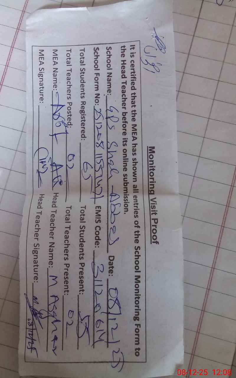 | EMIS Code: 31120614 | Name of School: GPS SHAH ABBAS | |||