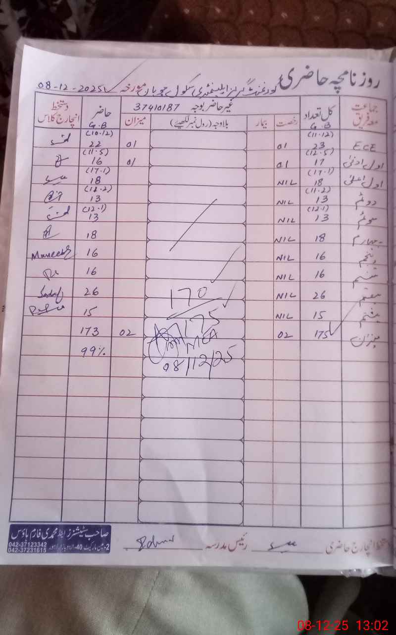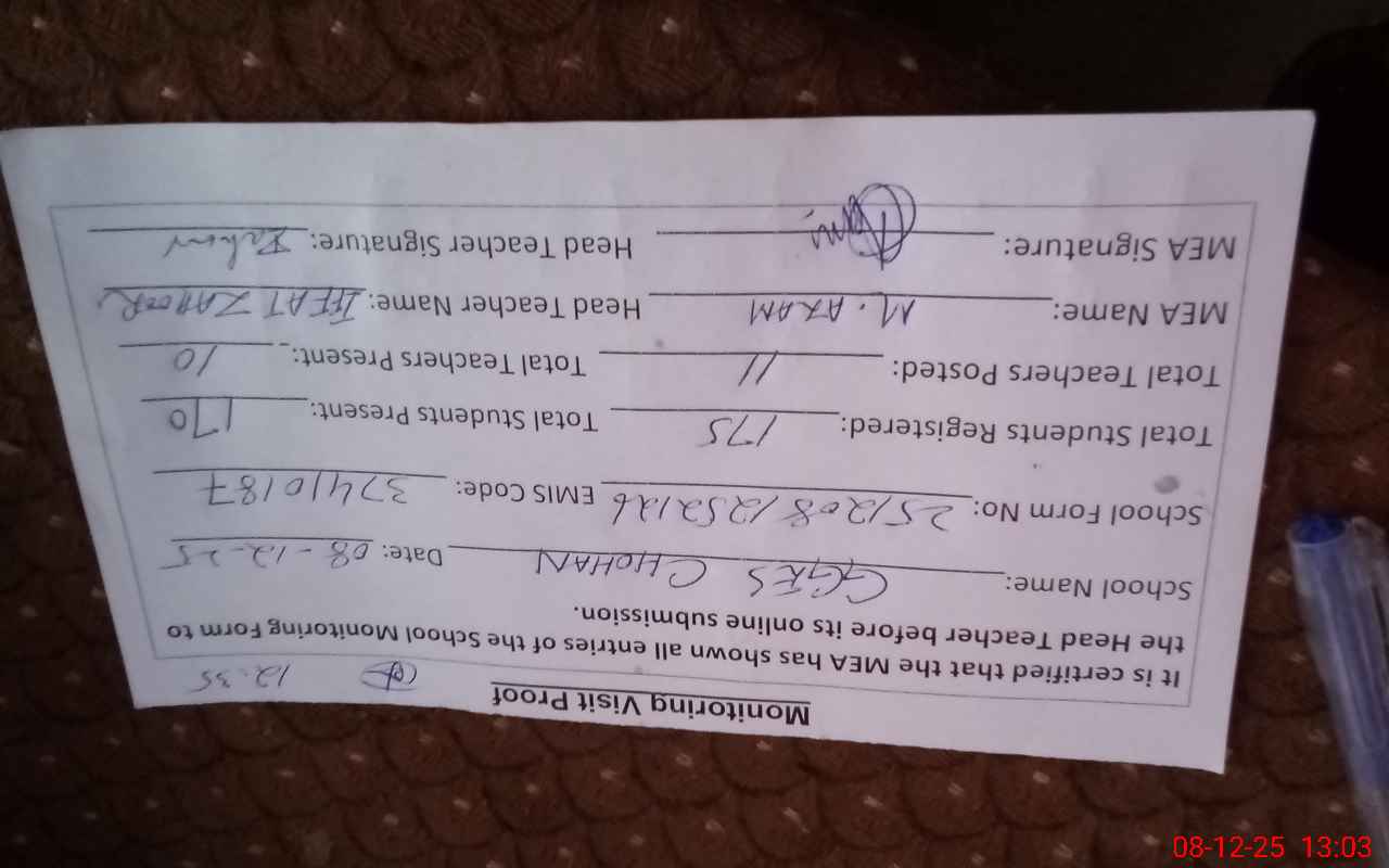 | Attendance Register | Head Teacher | MEA with School | Visit Proof |