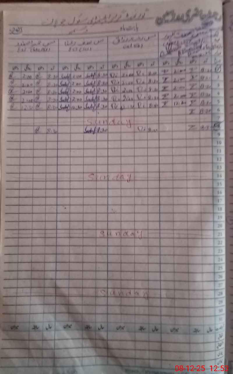 | CNIC | Full Name | Designation | R/C | Absence During Last Calender Month |
