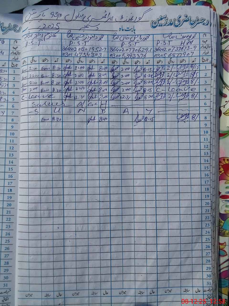 | Name: MU**** DI**** NA**** HU**** Designation: (School Headmaster's/Headmistress's) PST Phone/Cell Number: 03**** |