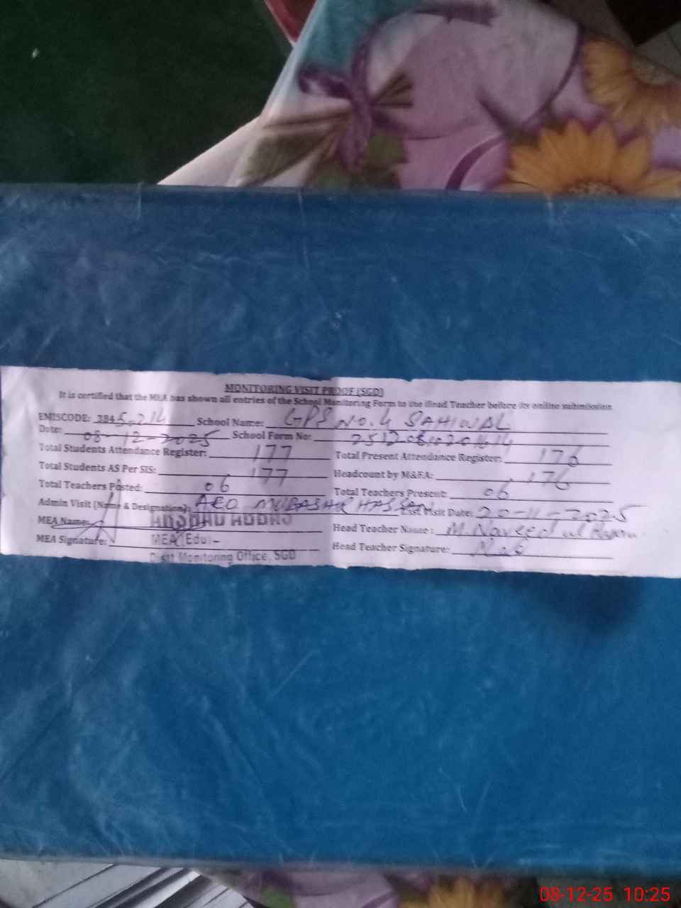 | EMIS Code: 38450214 | Name of School: GPS NO.4 SAHIWAL | |||