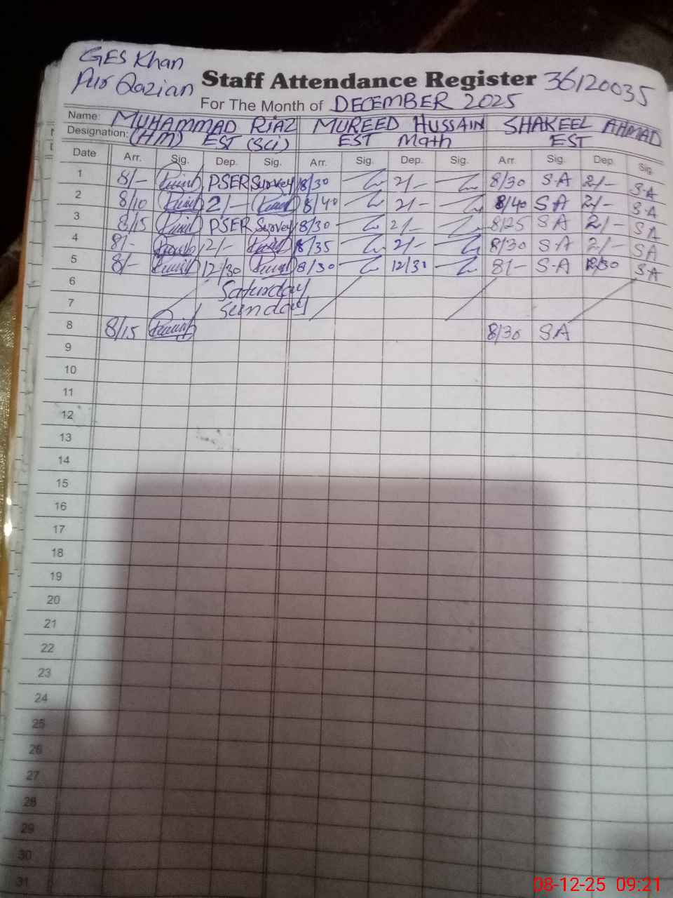 | Name: Mu**** Ri**** Designation: (School Headmaster's/Headmistress's) EST Phone/Cell Number: 03**** |