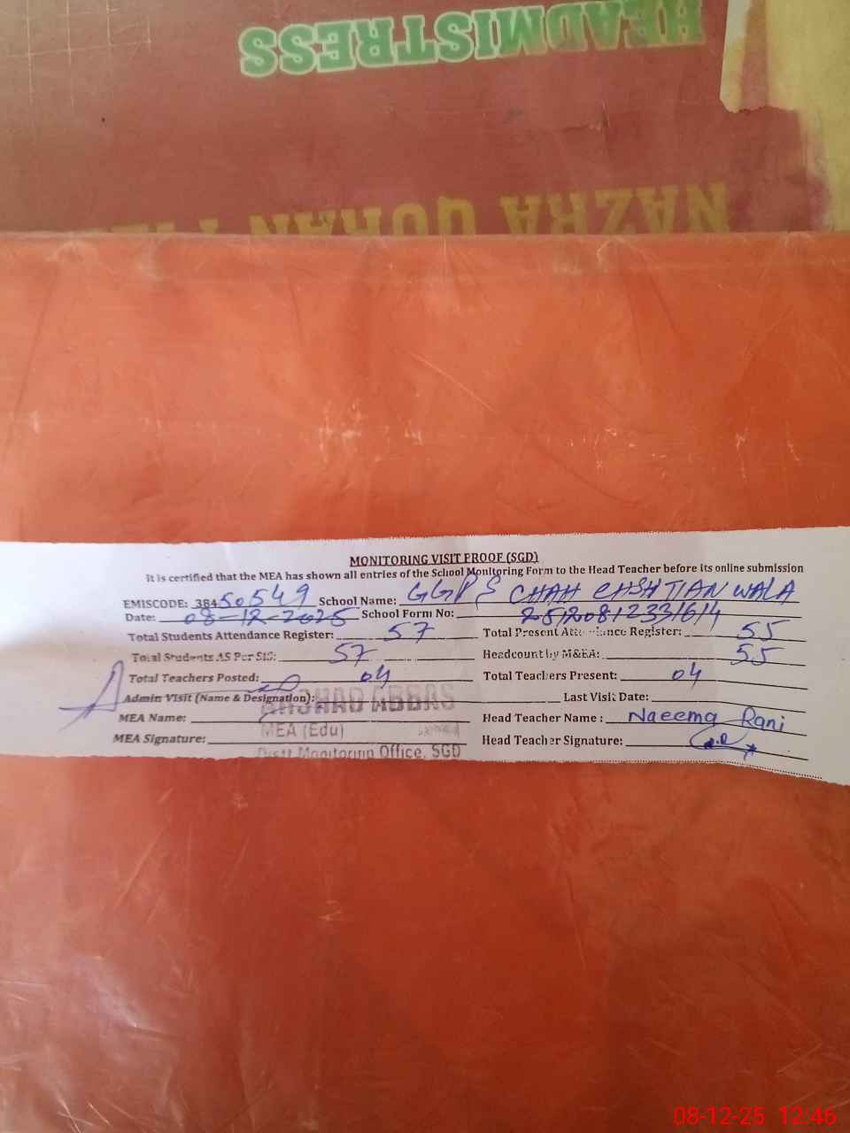 | EMIS Code: 38450549 | Name of School: GGPS CHAH CHSHTIAN WALA | |||
