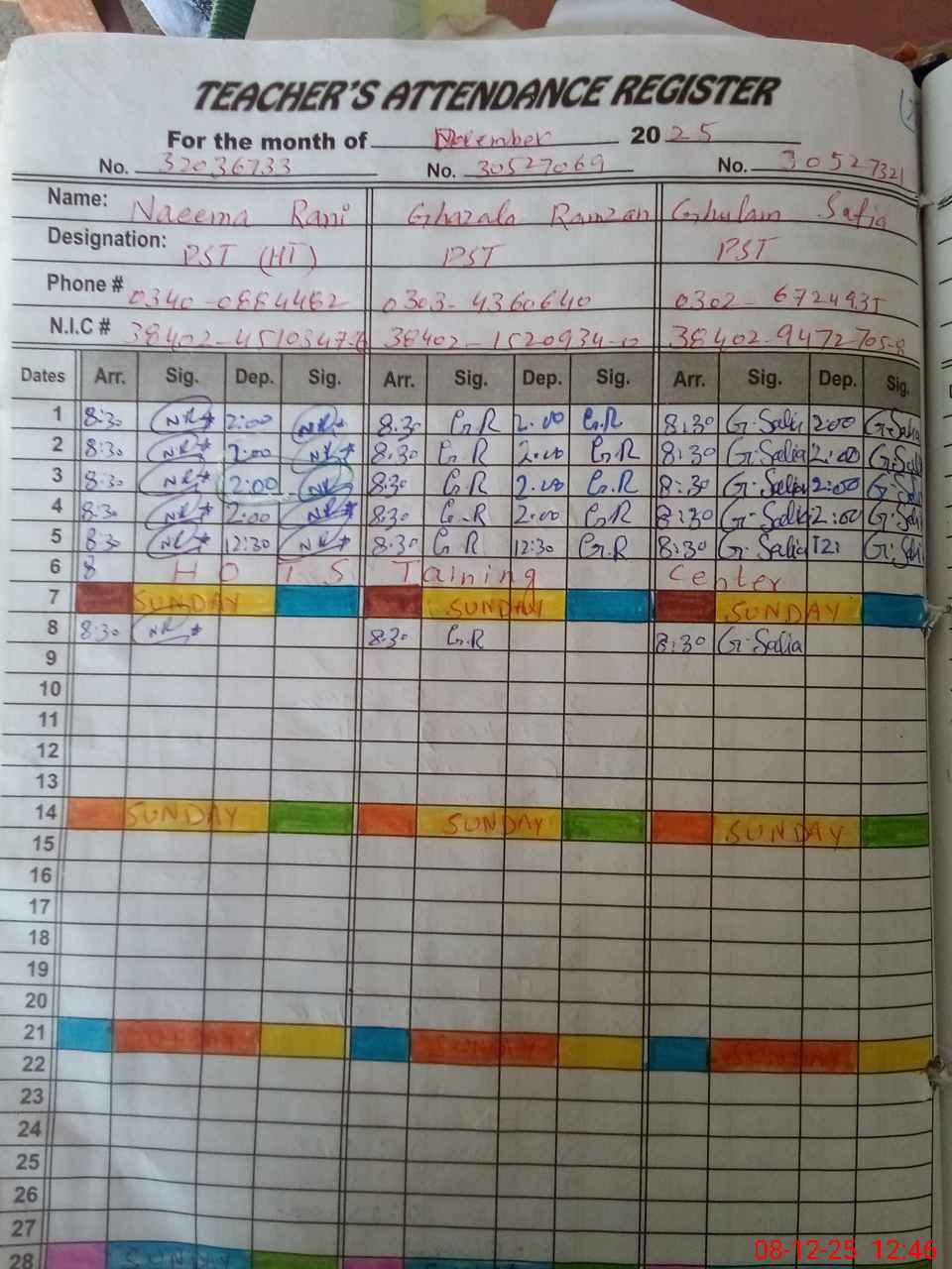| Name: NA**** RA**** Designation: (School Headmaster's/Headmistress's) PST Phone/Cell Number: 03**** |