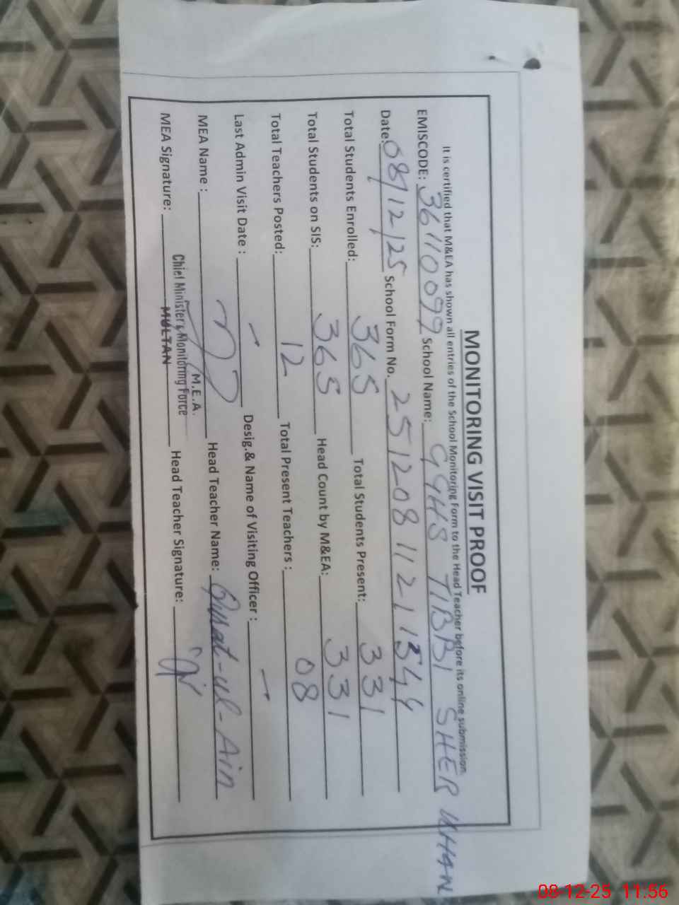 | EMIS Code: 36110099 | Name of School: GGHS MC TIBBI SHAIR KHAN MULTAN | |||