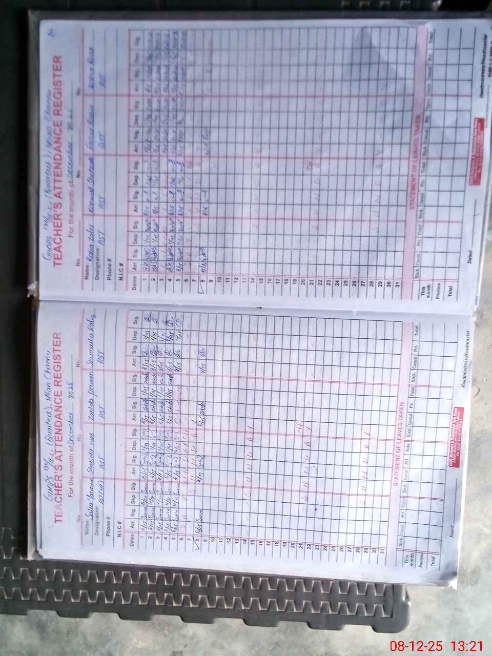 | CNIC | Full Name | Designation | R/C | Absence During Last Calender Month |