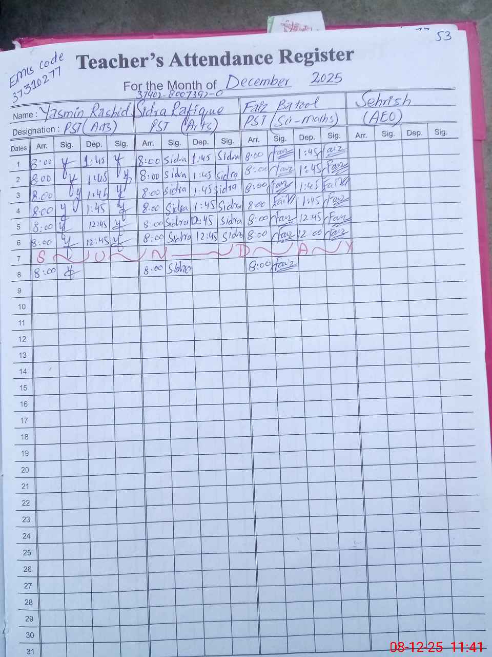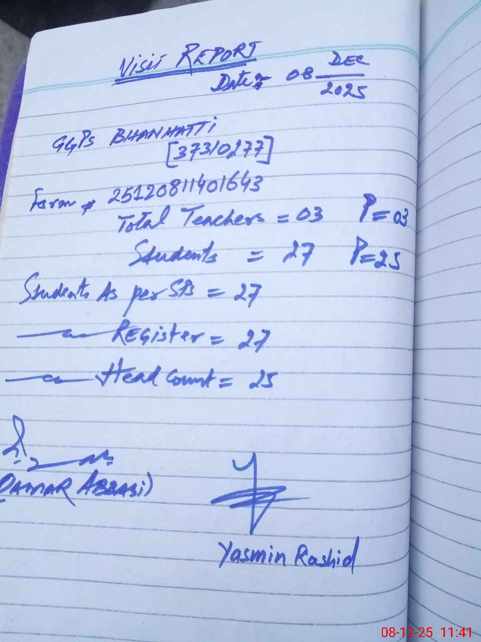 | Attendance Register | Head Teacher | MEA with School | Visit Proof |