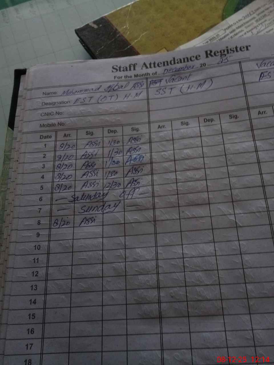 | Name: Ra**** Me**** Designation: (School Headmaster's/Headmistress's) SST Phone/Cell Number: 03**** |