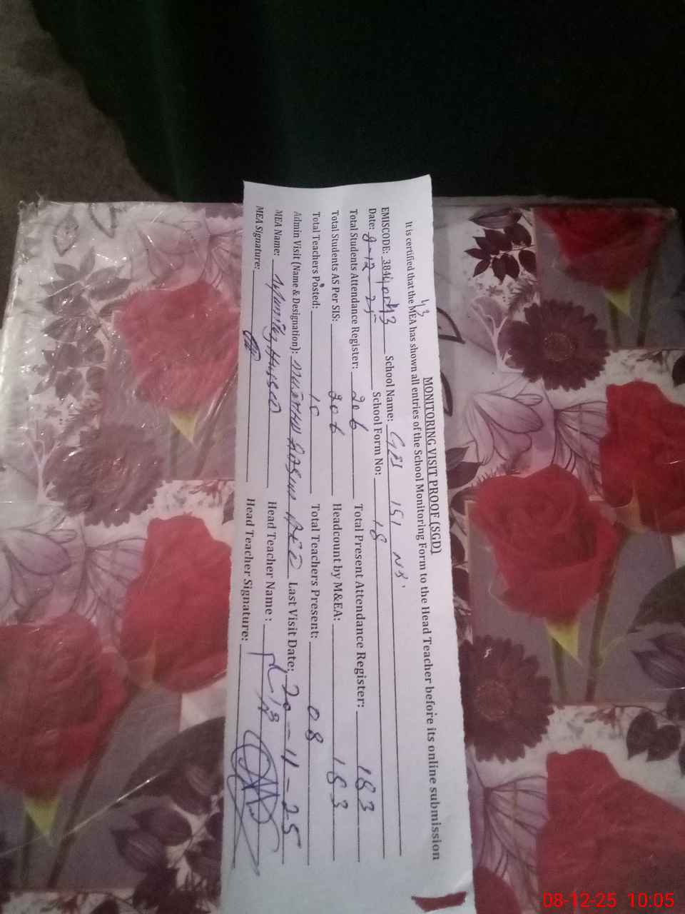 | Certified that this School was Inspected by the Undersigned MEA/DMO Today and the Information Stated Above is as Per Record. | |||||