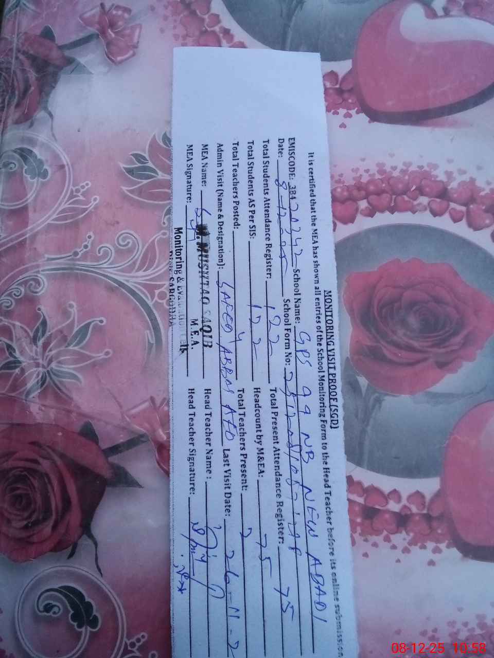 | EMIS Code: 38420342 | Name of School: GPS CHAK NO.99 NB NEW ABADI | |||