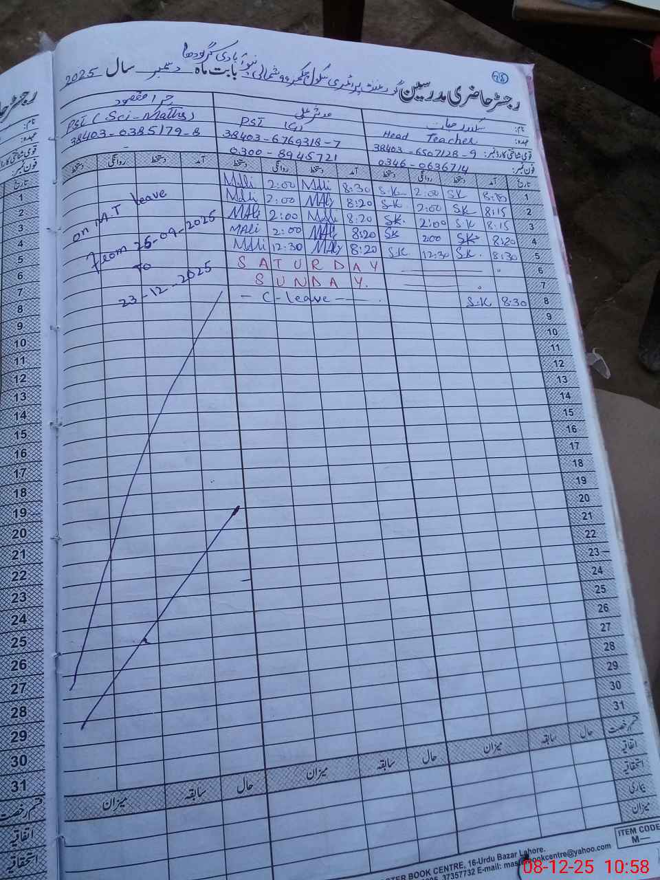 | 38**** | Hi**** Ma**** | PST Science/Maths | Regular | 0 | 0 | 0 | 0 | 0 | 0 | 0 | 0 | 0 | Maternity |