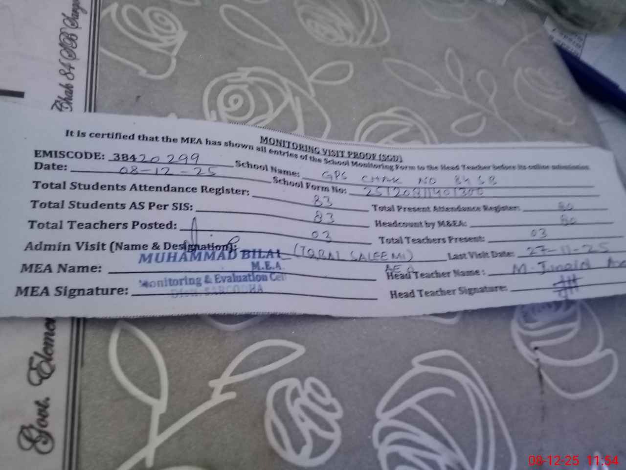 | EMIS Code: 38420299 | Name of School: GPS CHAK NO.84 SB | |||