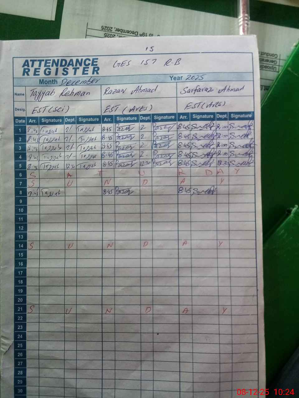 | CNIC | Full Name | Designation | R/C | Absence During Last Calender Month |