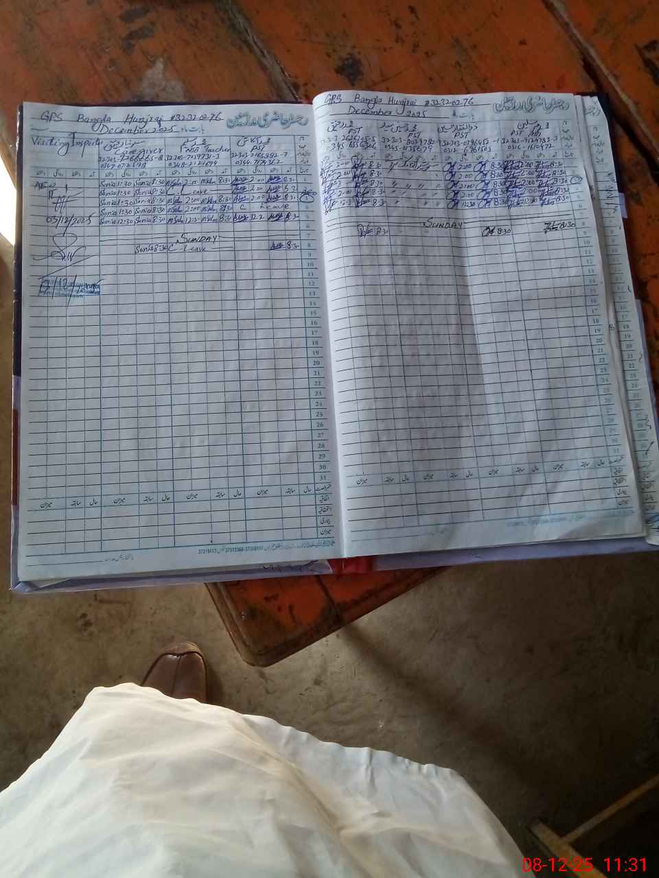 | CNIC | Full Name | Designation | R/C | Absence During Last Calender Month |