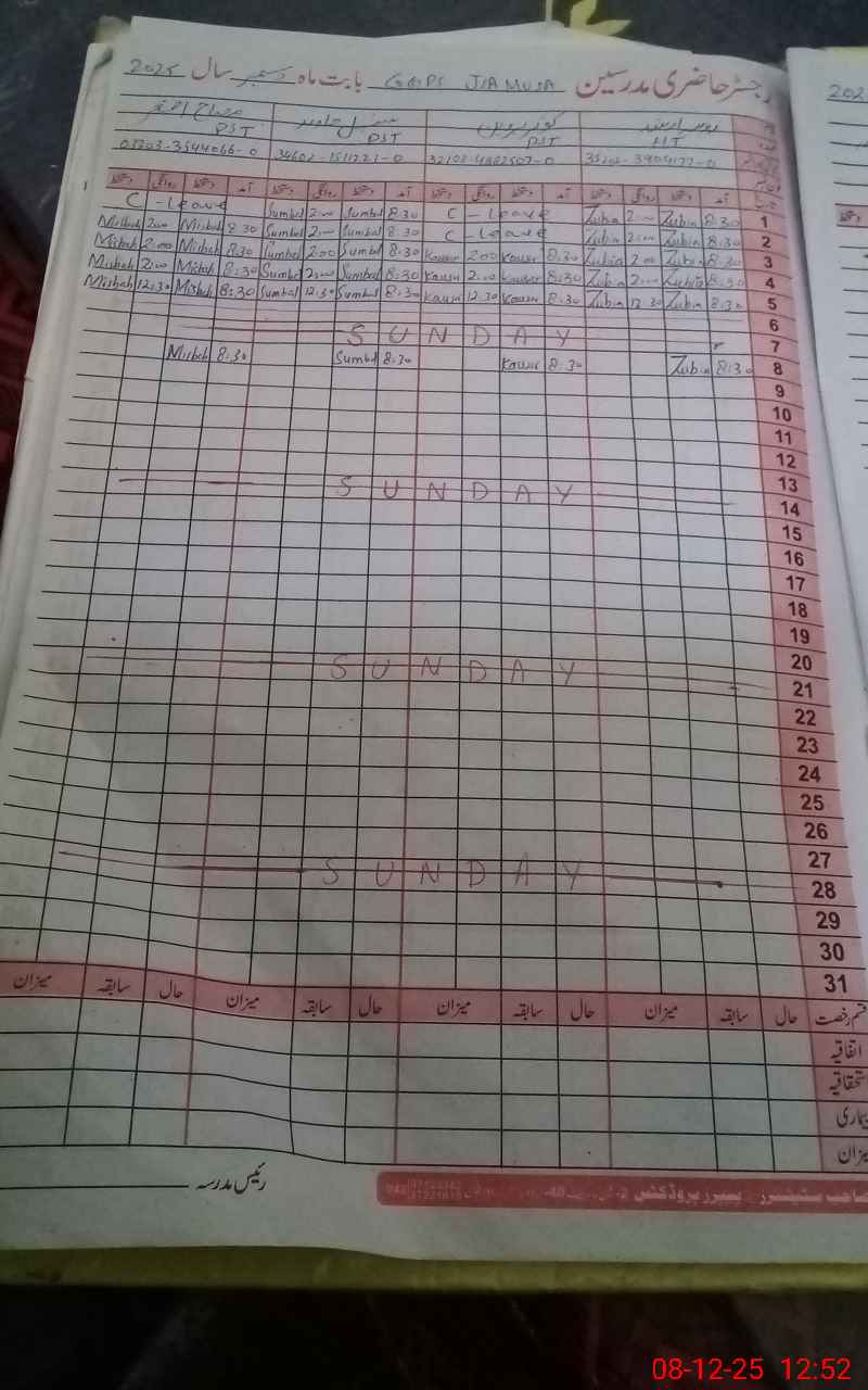 | Remarks (Use Separate Page if Required): NSB record on register not maintain in months of May, June 2025 and after that onward July 2025 not calculation properly afforsaid school only 02 class rooms Class 5th Students sitting in Verandah no ECE room established | |||||