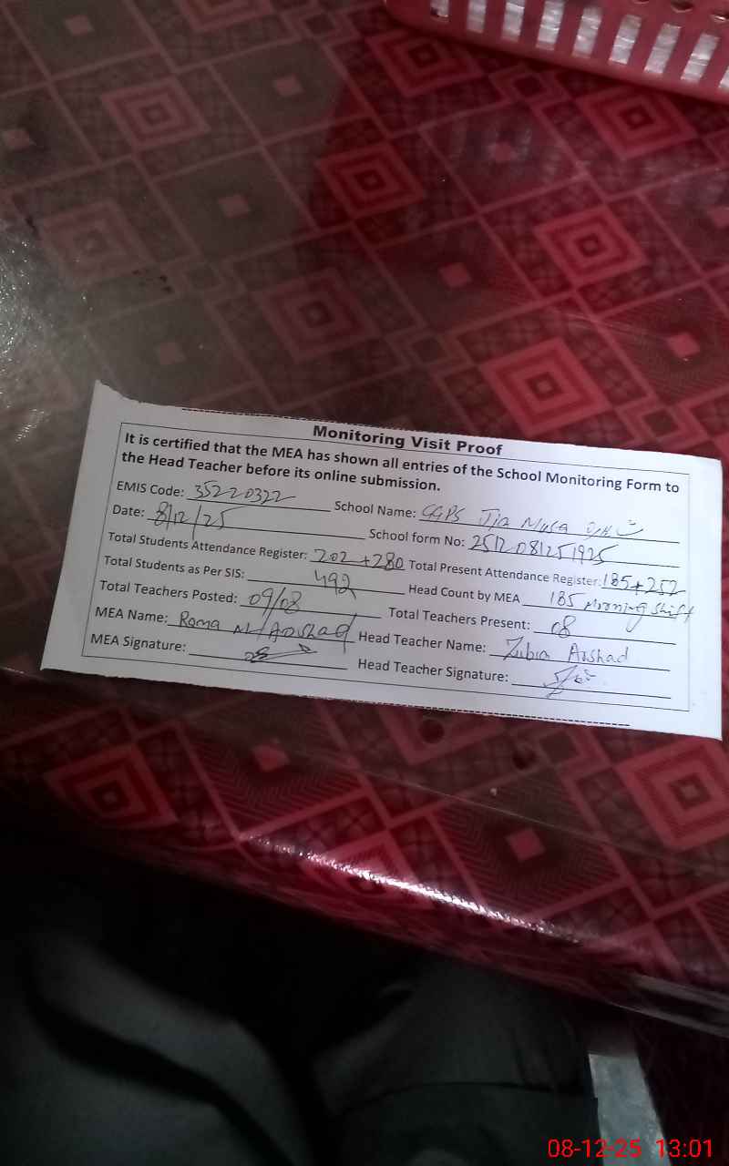 | EMIS Code: 35220322 | Name of School: GGPS JIA MUSA SHAHDRA | |||