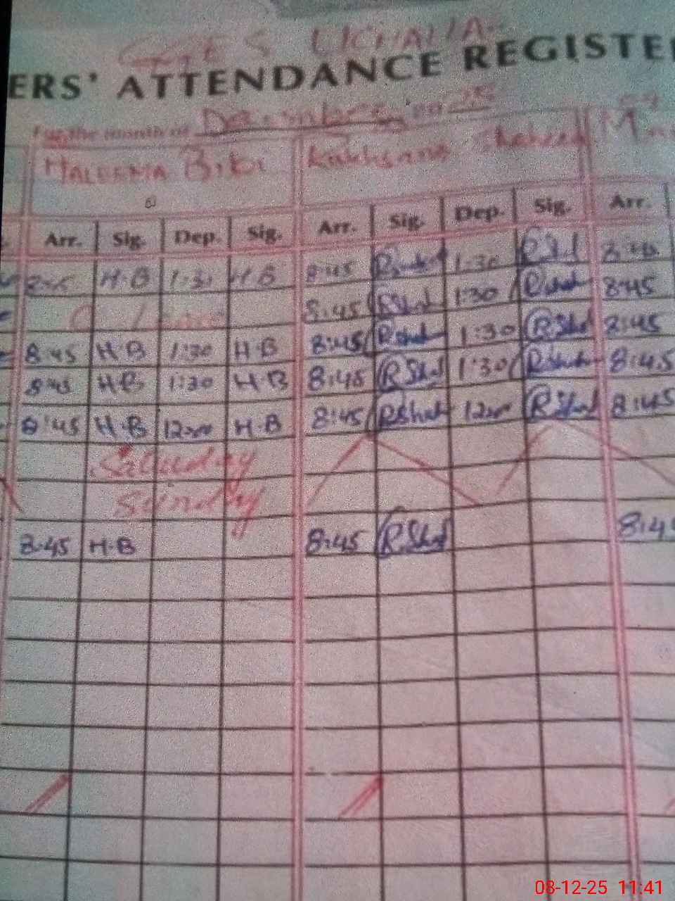 | CNIC | Full Name | Designation | R/C | Absence During Last Calender Month |
