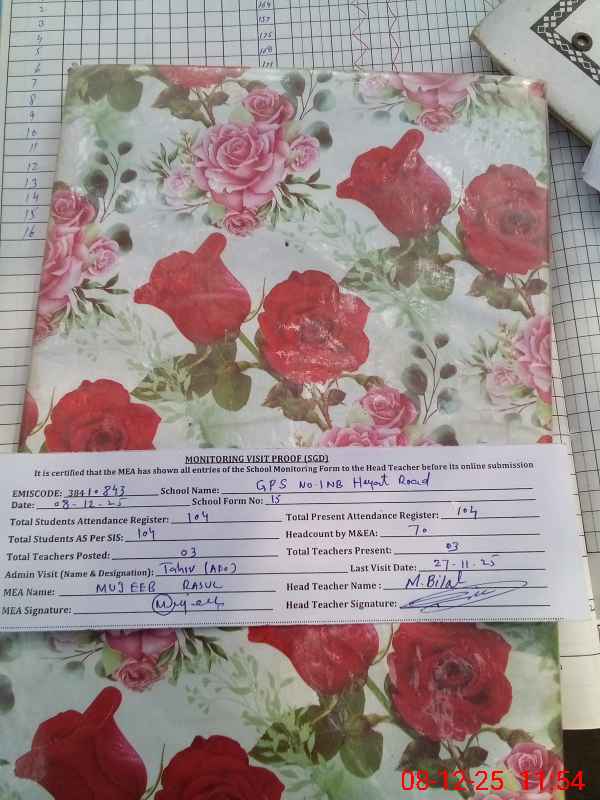 | EMIS Code: 38410843 | Name of School: GPS CHAK NO.1 NB HAYAT ROAD PHULARWAN | |||
