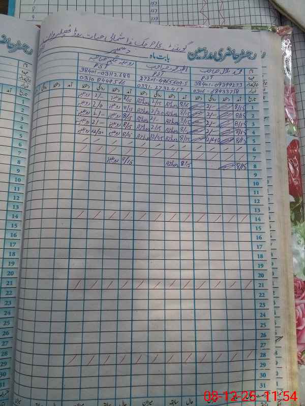 | CNIC | Full Name | Designation | R/C | Absence During Last Calender Month |