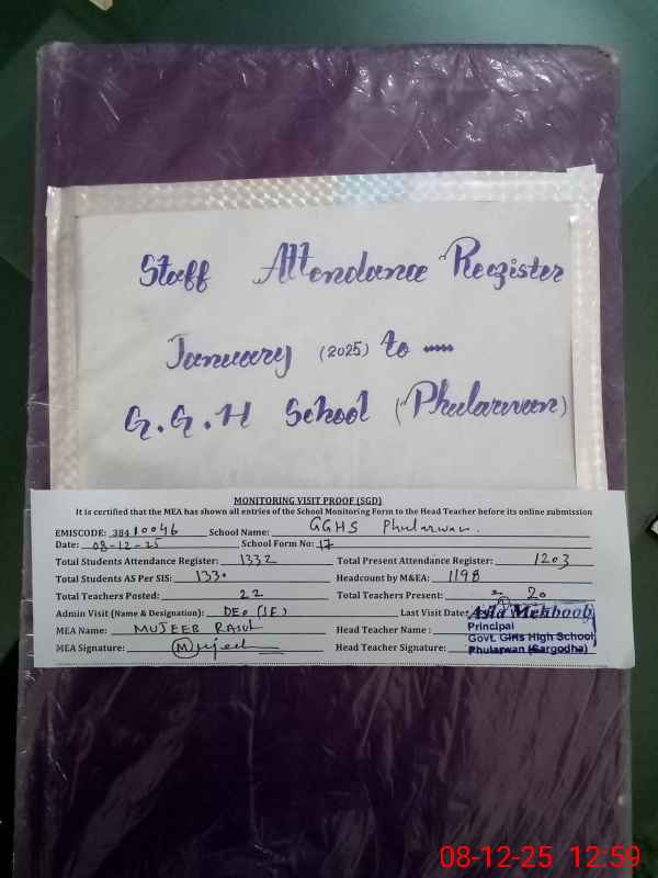 | EMIS Code: 38410046 | Name of School: GGHS PHULARWAN | |||
