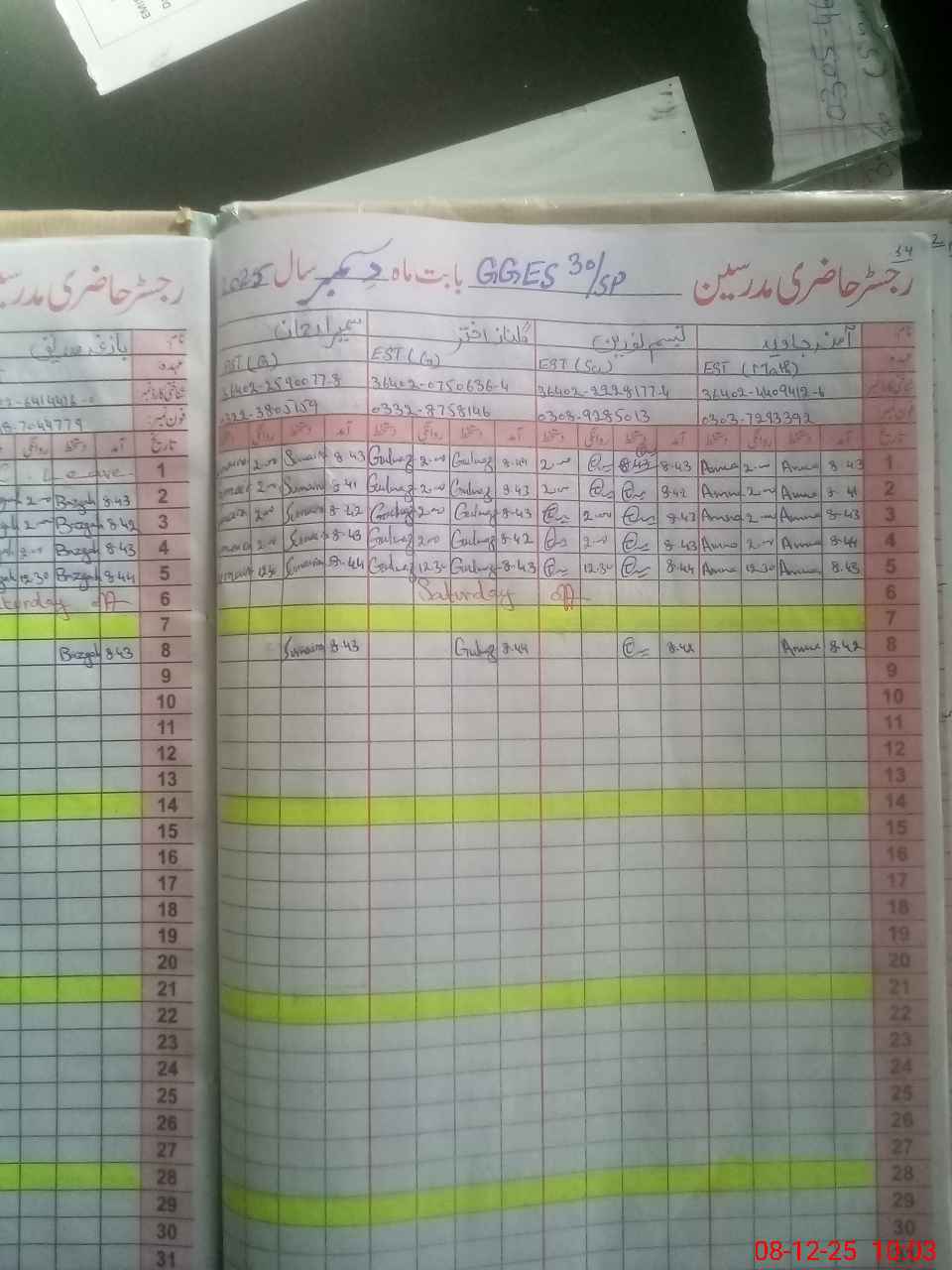 | Name: SA**** Tu**** Designation: (School Headmaster's/Headmistress's) SST Phone/Cell Number: 03**** |