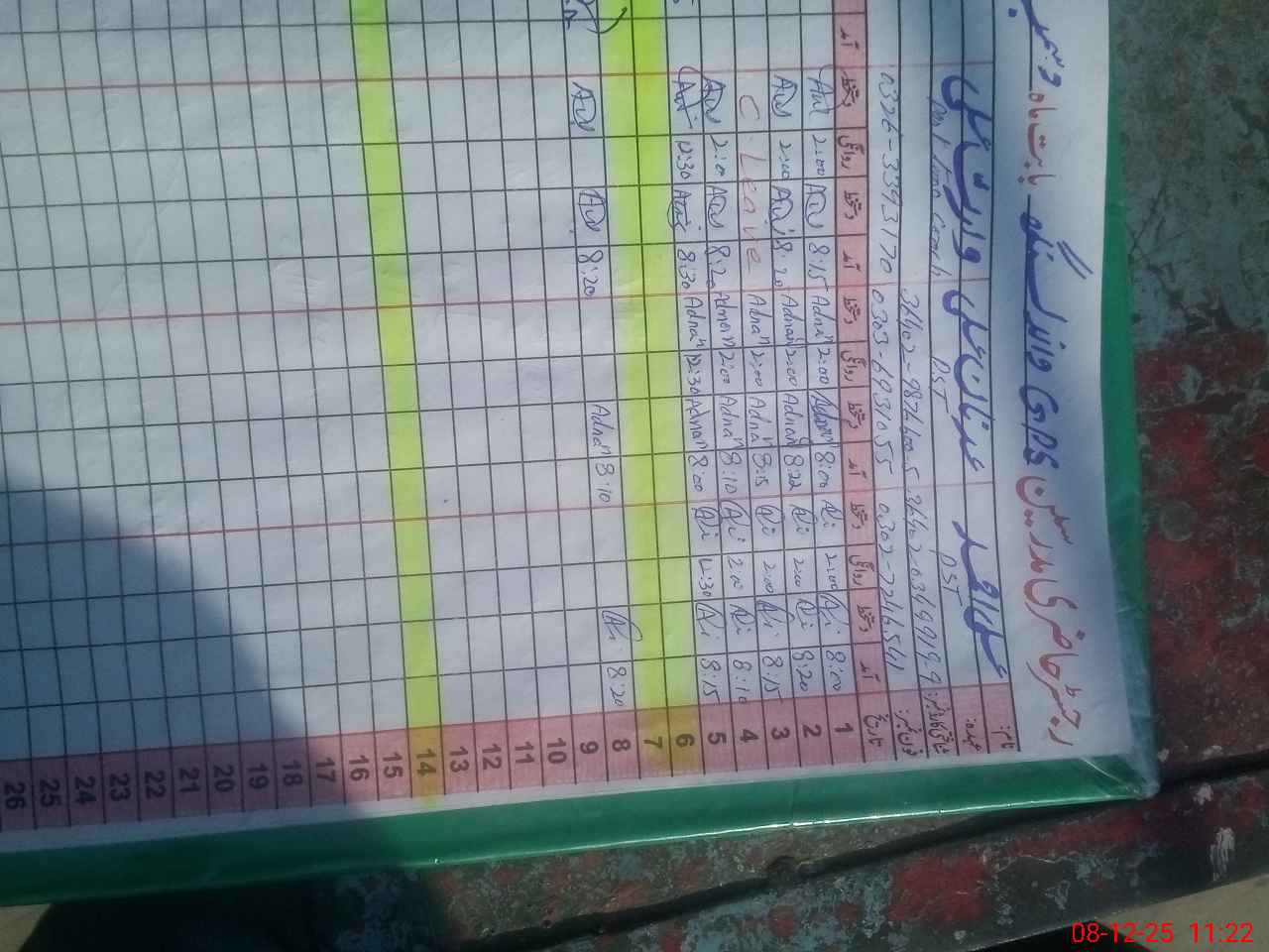 | CNIC | Full Name | Designation | R/C | Absence during last cal. month |