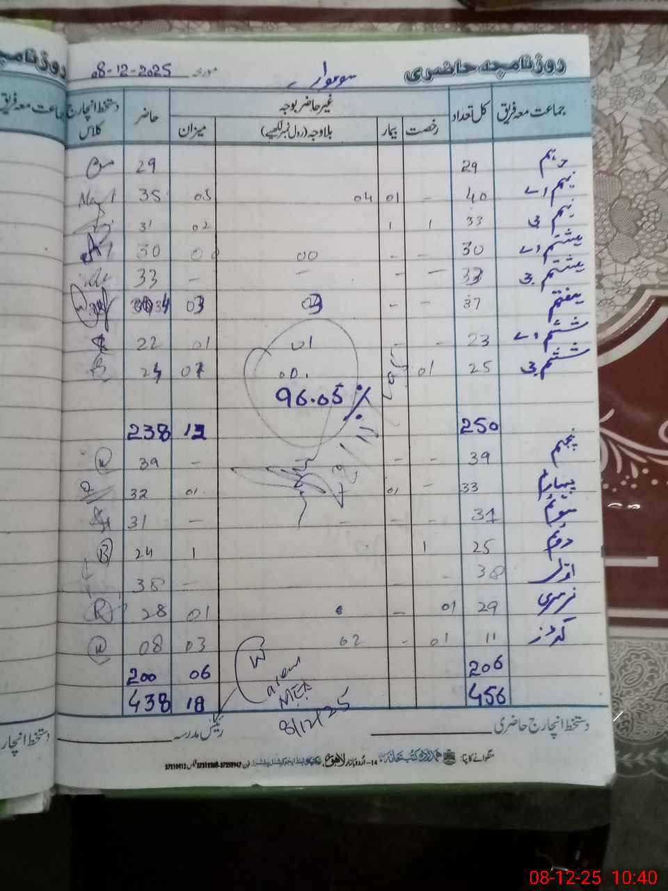 | No. of Students Present - Male | 0 | 8 | 38 | 24 | 31 | 32 | 39 | 46 | 34 | 63 | 66 | 29 | 438 | |||
