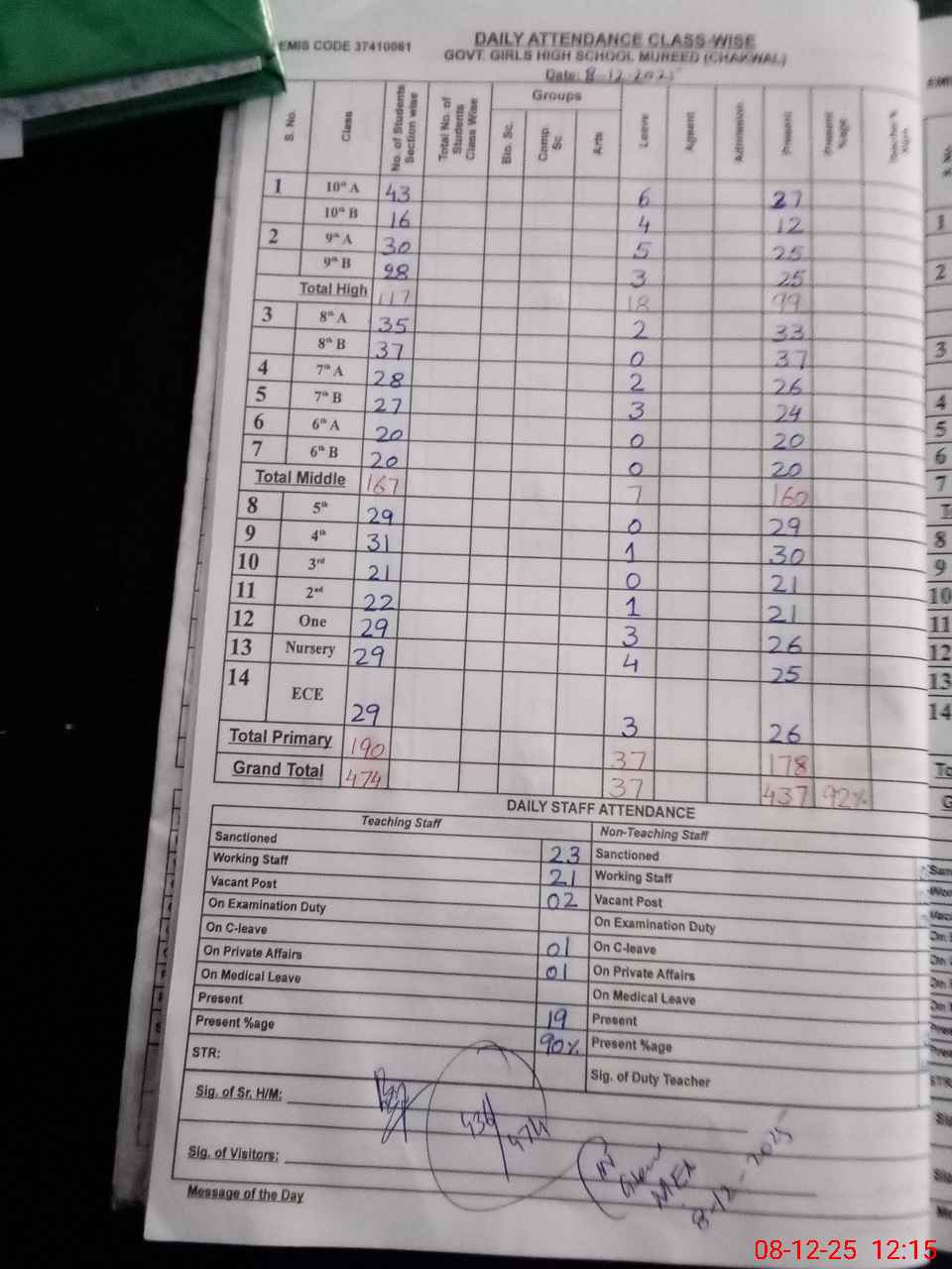 | EMIS Code: 37410061 | Name of School: GGHS MUREED CHAKWAL | |||