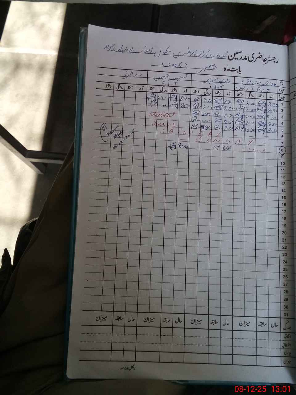 | Leave | Duty | Absent | Maternity | Medical | Ex- Pak |