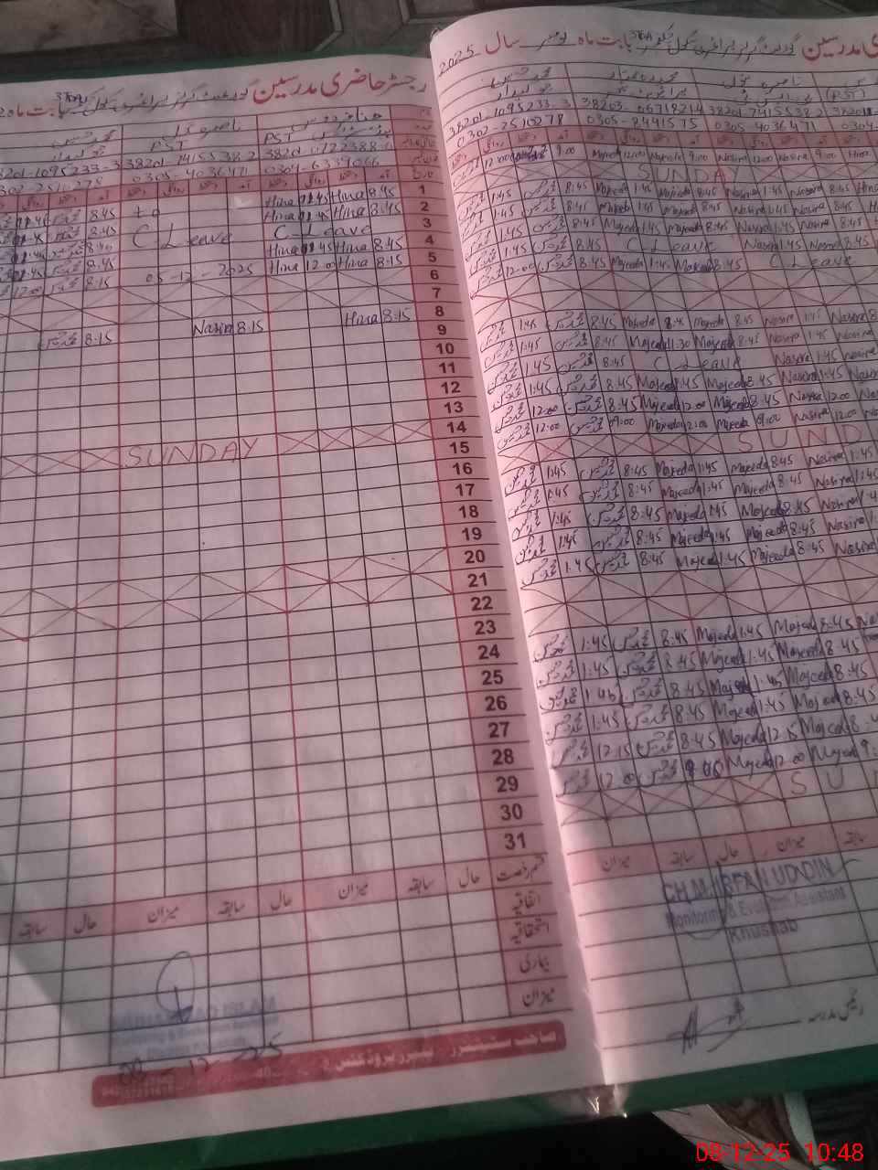 | CNIC | Full Name | Designation | R/C | Absence During Last Calender Month |