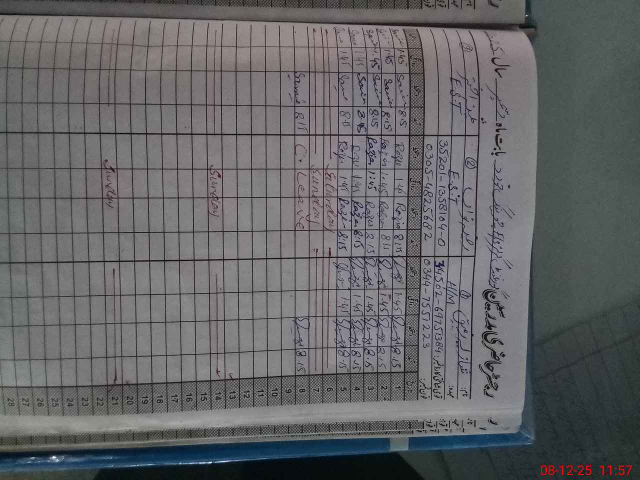 | CNIC | Full Name | Designation | R/C | Absence During Last Calender Month |