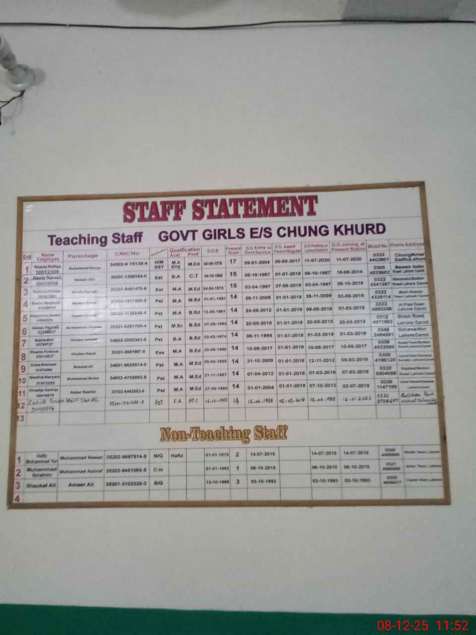 | EMIS Code: 35210917 | Name of School: GGHS CHUNG KHURD (DEFENCE) | |||