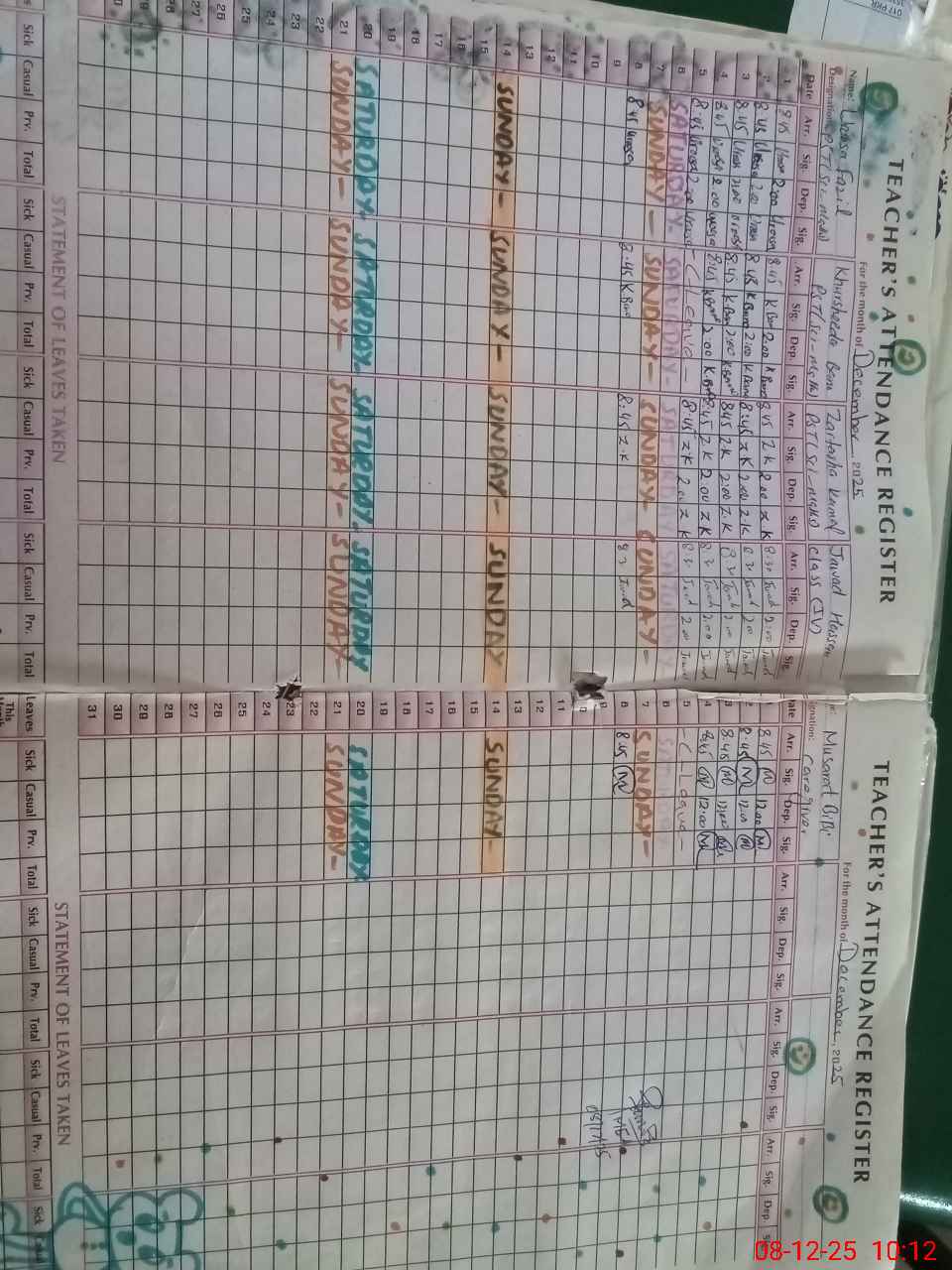| CNIC | Full Name | Designation | R/C | Absence During Last Calender Month |