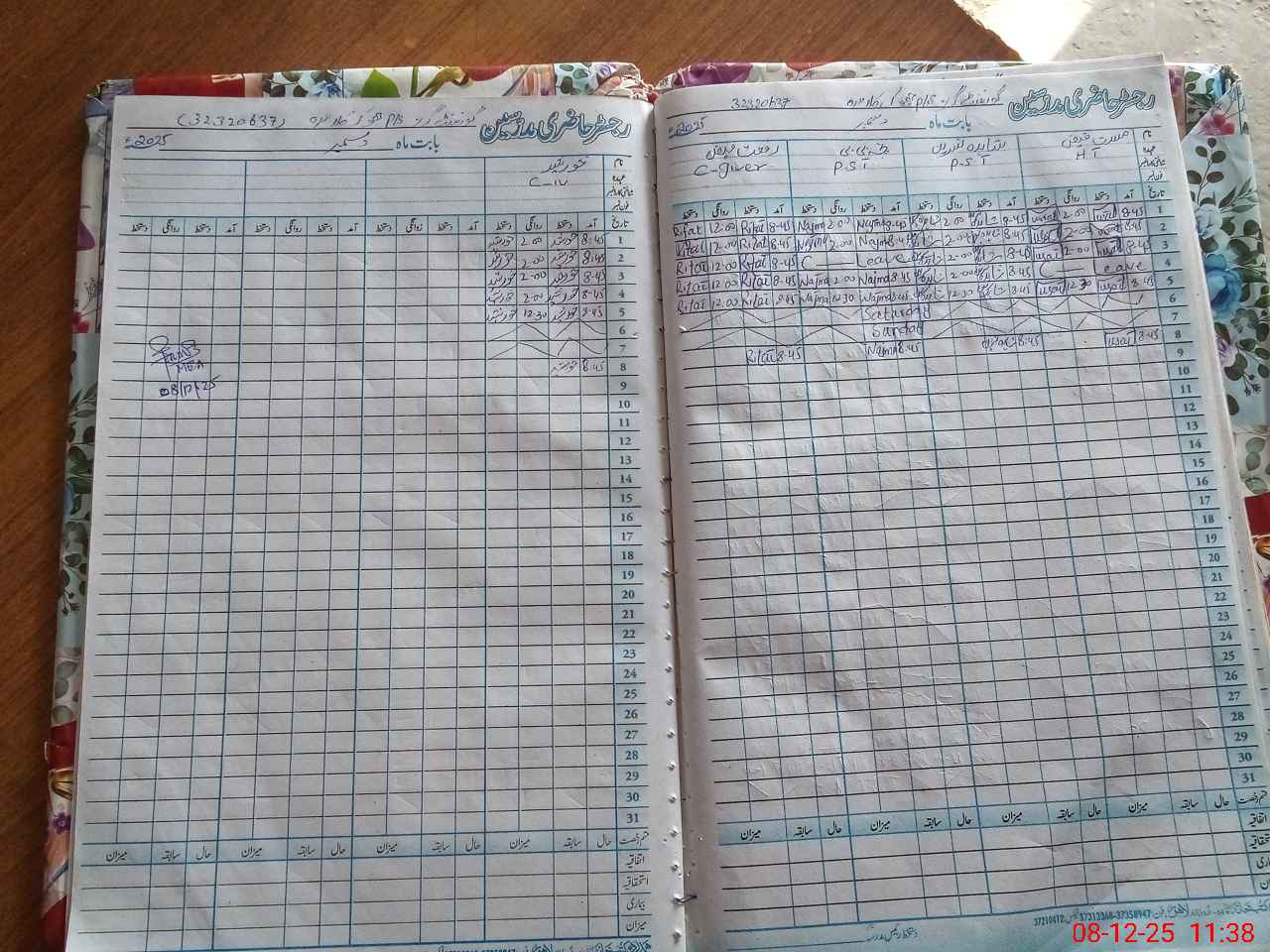 | CNIC | Full Name | Designation | R/C | Absence During Last Calender Month |