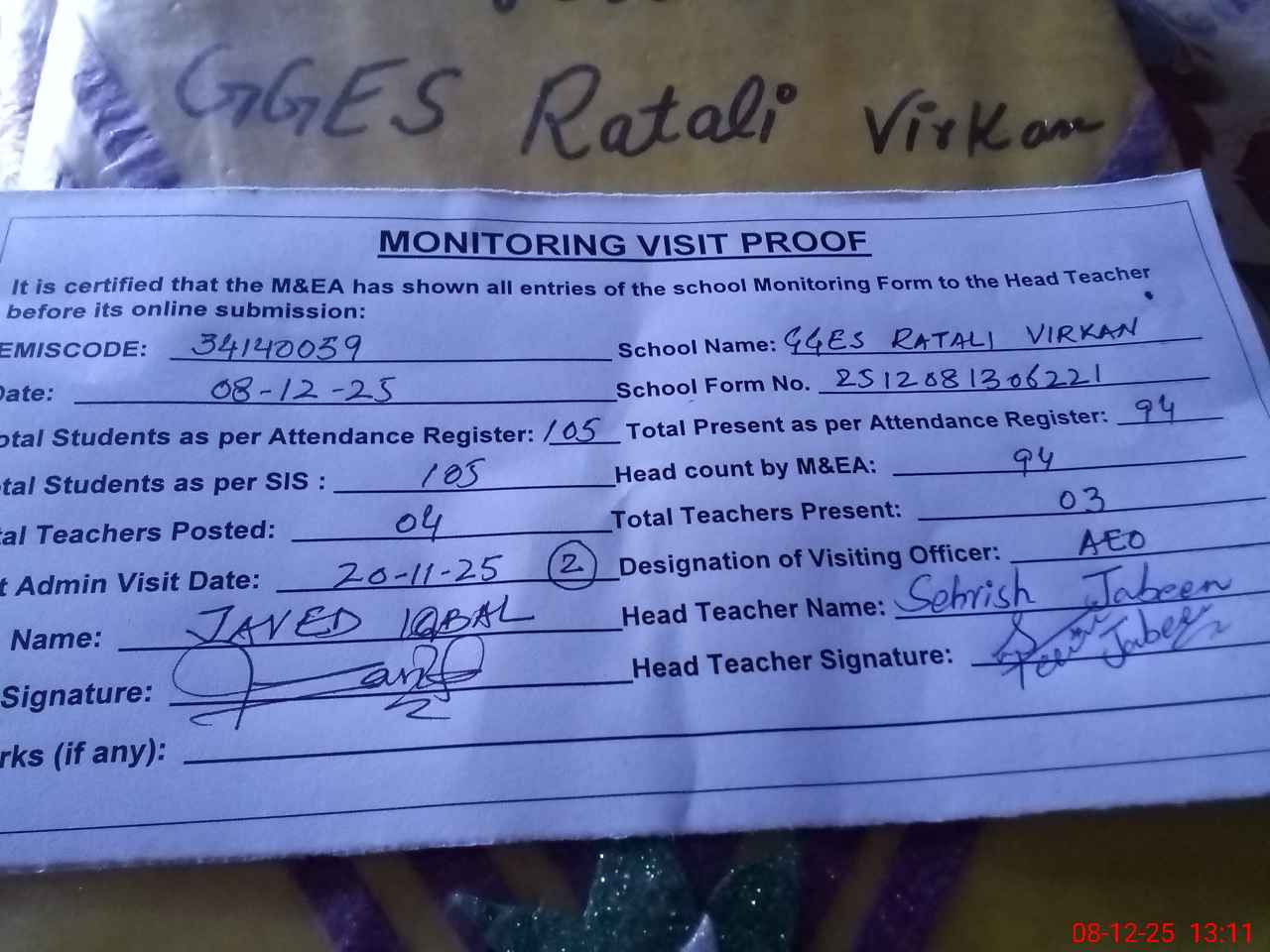 | EMIS Code: 34140059 | Name of School: GGES RATALI VIRKAN | |||