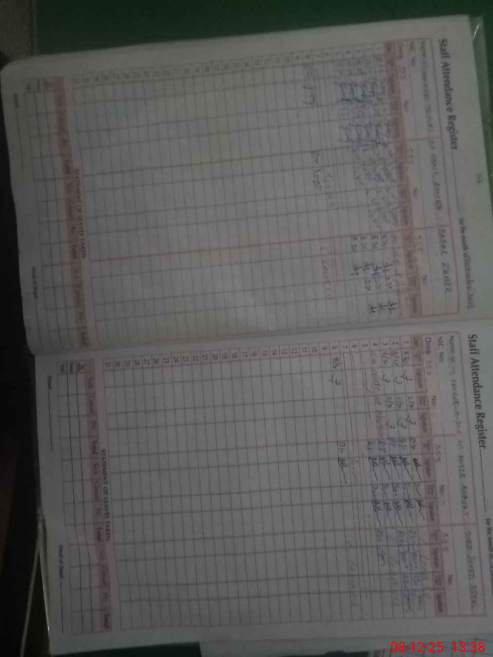 | CNIC | Full Name | Designation | R/C | Absence During Last Calender Month |