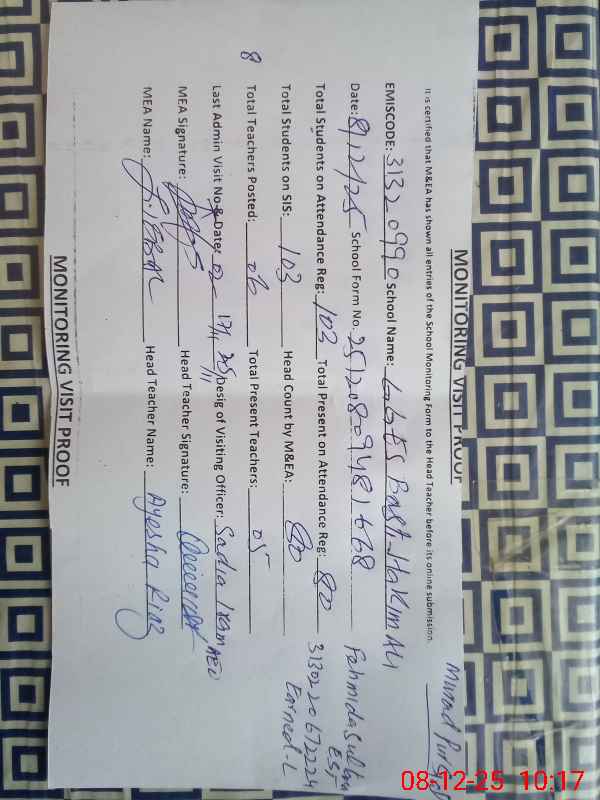 | EMIS Code: 31320990 | Name of School: GGES BASTI HAKIM ALI | |||