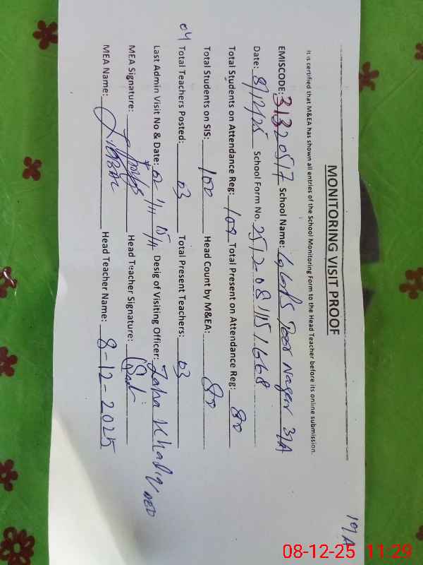 | EMIS Code: 31320517 | Name of School: GGPS CHAK NO. 3/A TOOR NAGAR | |||