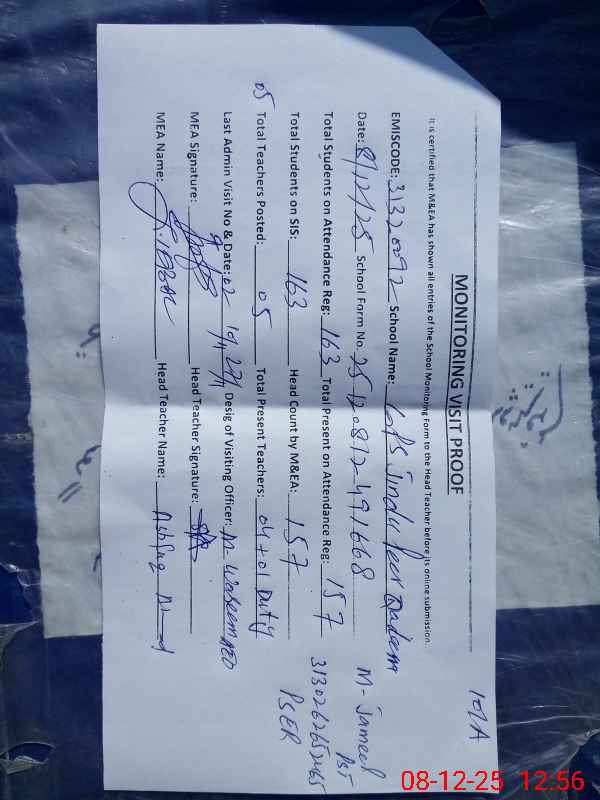 | EMIS Code: 31320092 | Name of School: GPS JINDU PEER QADEEM | |||