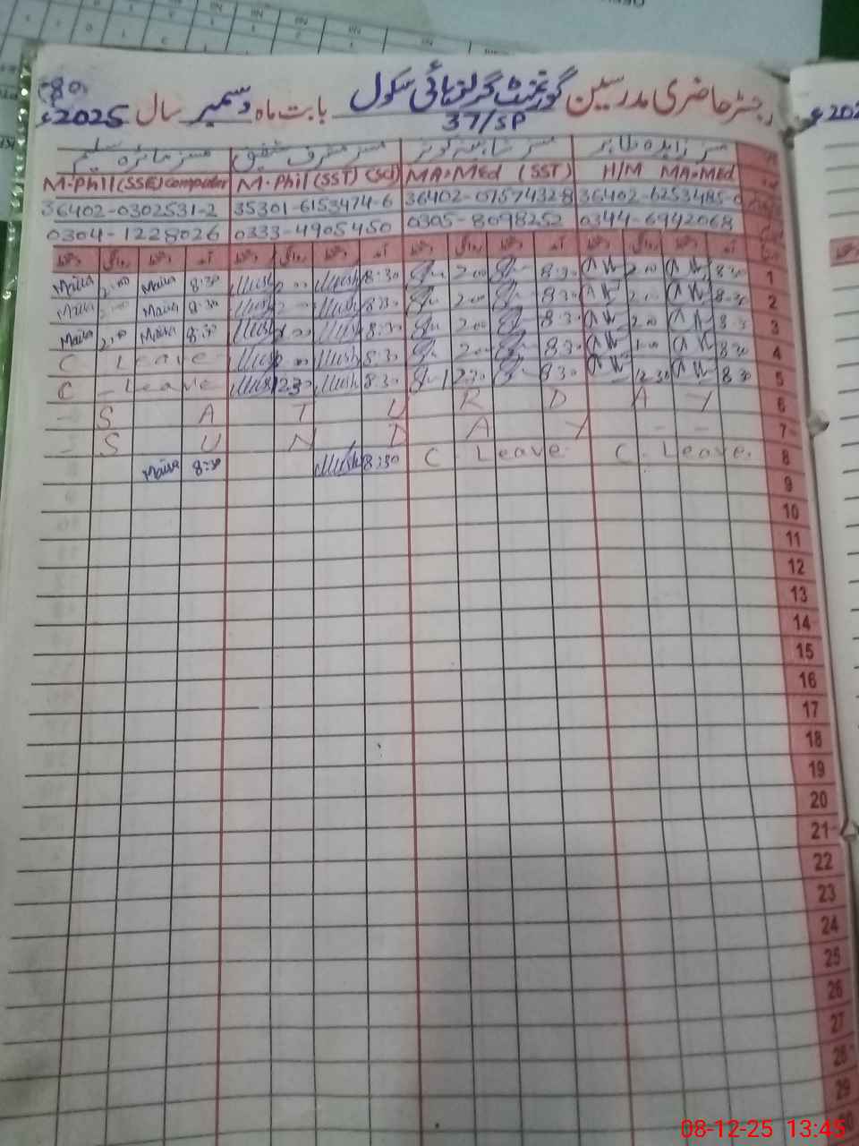 | 36**** | Za**** Ta**** | SSS Civics | Regular | 0 | 0 | 0 | 0 | 0 | 0 | 0 | 0 | 0 | Casual |