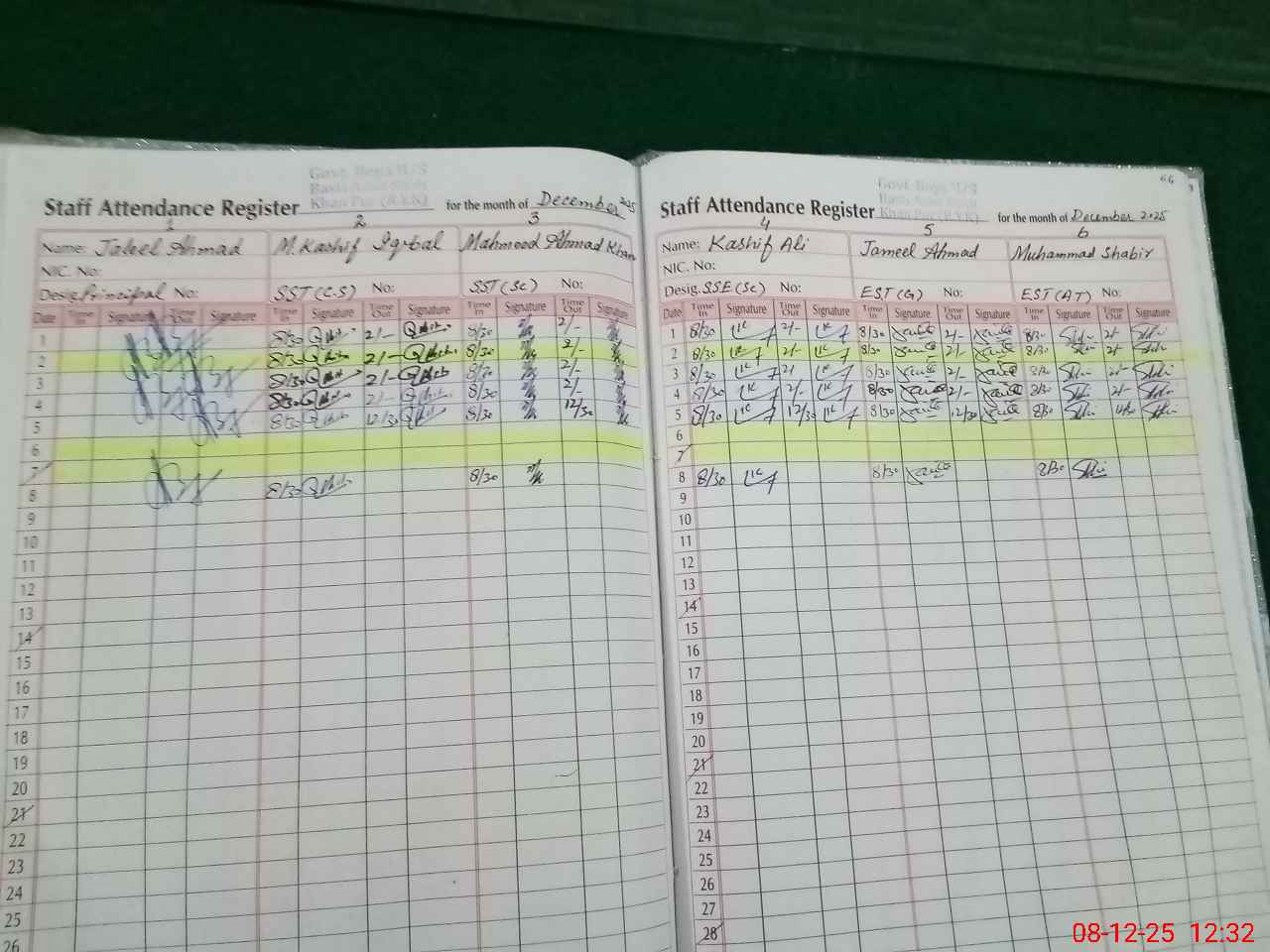 | CNIC | Full Name | Designation | R/C | Absence During Last Calender Month |