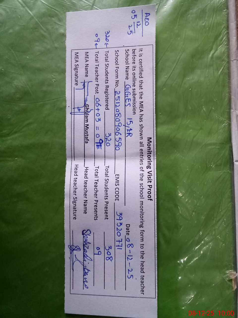| EMIS Code: 39320771 | Name of School: GGES CHAK NO. 15/1-R | |||