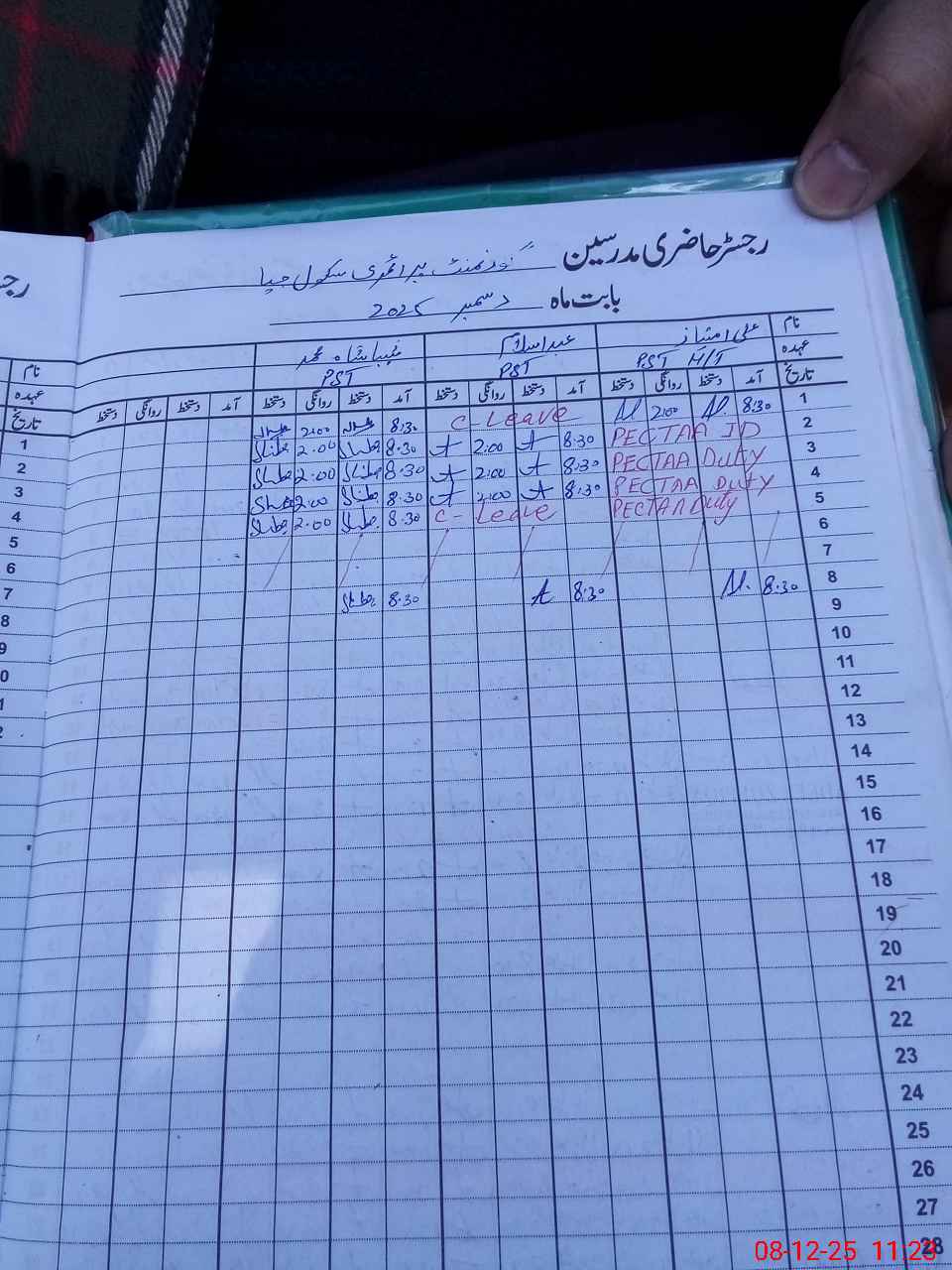 | Remarks (Use Separate Page if Required): present students percentage is 85 percent 10 students difference in head count and roznamcha 35220180 | |||||